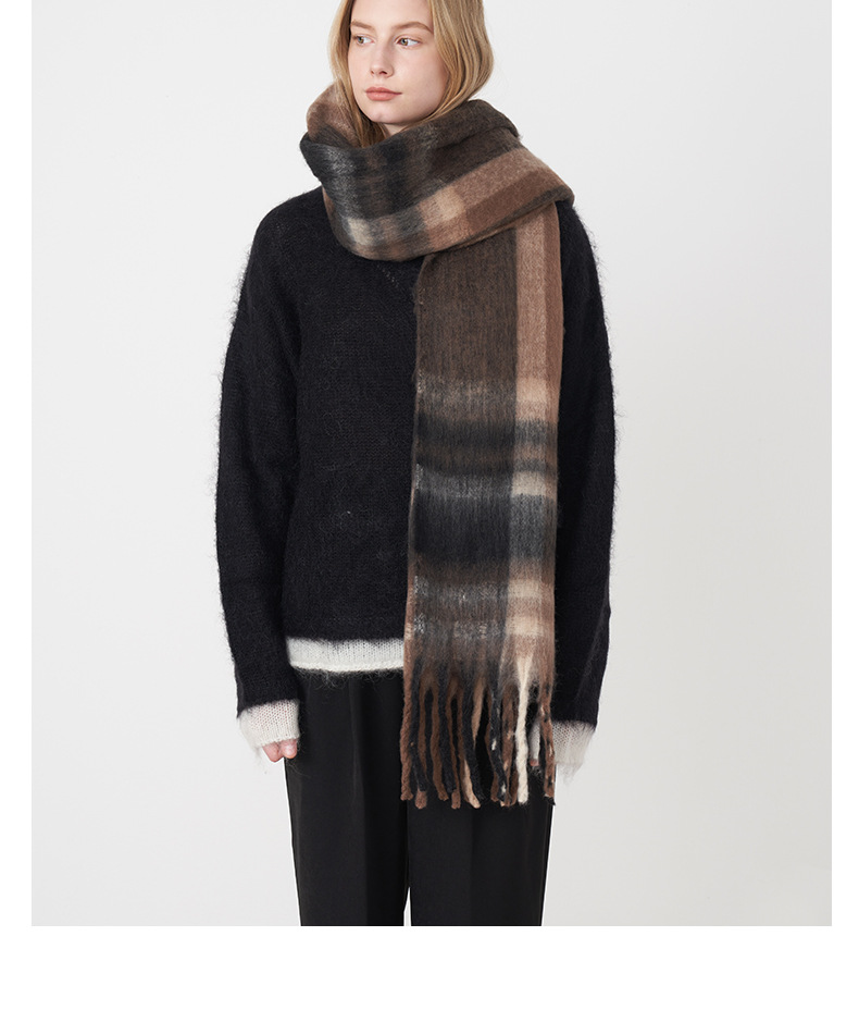 Oversized winter plaid scarf for women, super soft and cozy.